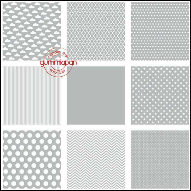Grey series - paperManufacturer: Gummiapan SKU: GPS150 €2.00 Qty: Add to cart Ship toSelect countryBelgiumFranceLuxembourgNetherlandsUnited Kingdom *Other *Shipping MethodNameEstimated DeliveryPriceNo shipping optionsApply Custom wishlist OKAdd to wishlistAdd to compare listEmail a friendPatterned paper in Grey and white.Printed on 200 g acid and lignin-free paper.One sheet of each in a series of 8 different designs, and 2 solid-color sheets.A total of 10 sheets in the package. The sheets are 14.5 x 14.5 cm.Product tags grijs (38), papier (24)