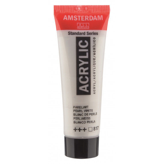 Pearl white (817) - acrylic paintManufacturer: Royal Talens SKU: AA817 €1.55 Qty: Add to cart Ship toSelect countryBelgiumFranceLuxembourgNetherlandsUnited Kingdom *Other *Shipping MethodNameEstimated DeliveryPriceNo shipping optionsApply Custom wishlist OKAdd to wishlistAdd to compare listEmail a friendPearl white (817) is a transparent paint with a white gloss and excellent lightfastness (+++).Amsterdam acrylic 20 mlAmsterdam Standard Series 20 ml offers everything an acrylic painter needs to paint. A high-quality acrylic paint and a range with a huge selection of colors.A very high degree of lightfastness, Durable paint film, Easy to dilute with water, Short drying time, thin layers of paint dry within half an hour, Paint is virtually odorless.Product tags wit (25), acrylverf (125), 20ml (89), parel (6)