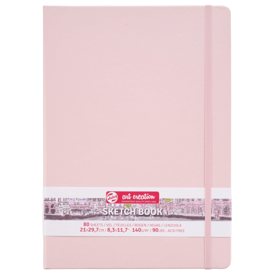 Beautiful, compact sketchbook from Talens Art Creation. Hardcover sketchbook with an elastic band. Suitable for sketching, drawing, charcoal, pastels, graphite, chalk, ink, and watercolor. 80 sheets of 140-gram white paper.